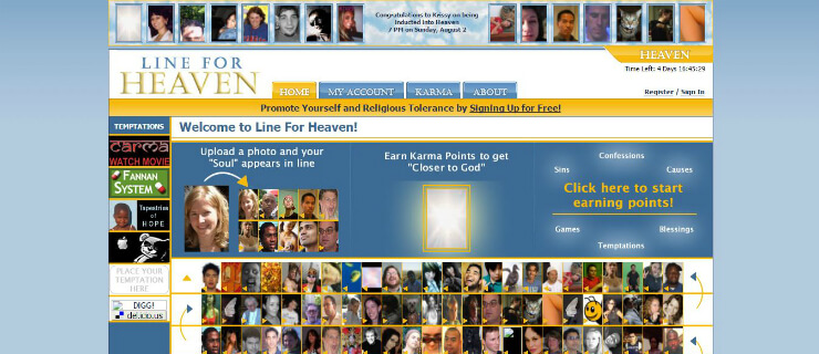 Quem aqui gostava de ir para o Paraíso? Existe uma rede social Line For Heaven que assenta num estranho sistema de pontos, quase como se fosse um jogo, mas que lhe atribui uma pontuação que o ajuda a ir para o “paraíso” sempre que concretiza uma determinada boa acção. Todos os domingos as pessoas com maiores pontuações ganham uma garantia de que o Paraíso estará de portas abertas para os receber.