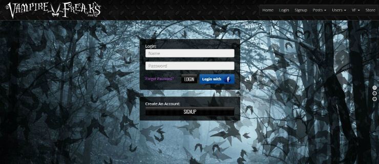 Os vampiros estiveram especialmente na moda alguns anos atrás, mas quem disse que passaram totalmente de moda? Se é fã de vampiros vai então adorar a rede social Vampire Freaks, que o põe em contacto directo com pessoas que adoram toda a cultura vampiresca. Além de ter o seu perfil pessoal, pode divulgar os seus trabalhos sobre vampiros e receber a opinião de outros utilizadores.